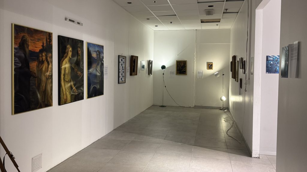 Näyttelyn keskiössä oli perinteiseen telineeseen asetettu digitaalinen taulu, joka vaihtoi sisältöä klassikkomaalauksista suomalaisiin luontomaisemiin ja esitti myös ”tekoälyuutisia”. Kävijöitä myös haastettiin arvaamaan, mikä kahdesta lähes identtisestä kuvasta oli aito valokuva ja mikä tekoälyn luoma, sekä etsimään ruudukosta ainoa oikea ihmiskasvo.